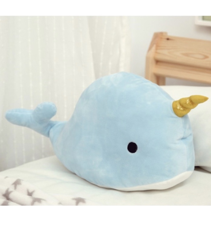 Διακοσμητικό Βελούδινο Μαξιλάρι Σιέλ Μονόκερος Φάλαινα 45 εκ