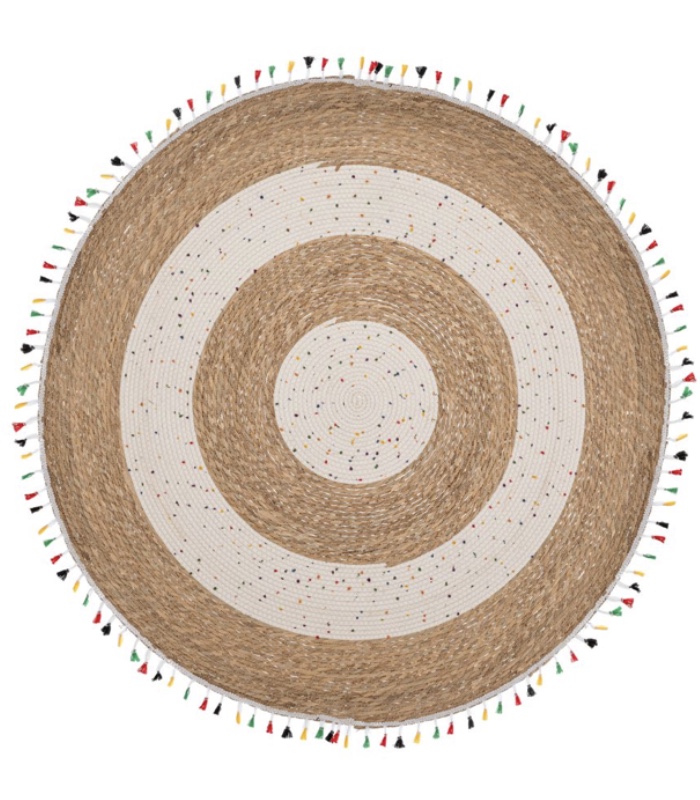 Διακοσμητικό χαλί στρογγυλό από Γιούτα με κρόσια πολύχρωμα 120 εκ